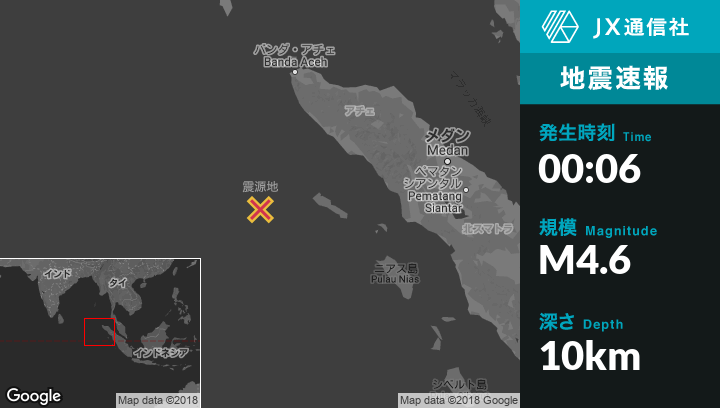 | 震源地 | インドネシアのSinabangから西203kmの地点 |