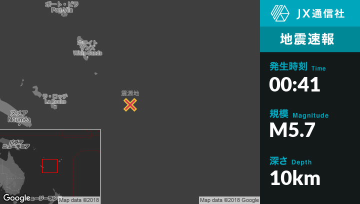 | 震源地 | ニューカレドニアのIle Hunterから北北西139kmの地点 |