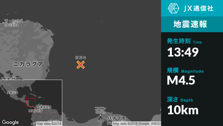11月29日 13:49頃、コロンビアのMountainから南40kmの地点でM4.5の地震がありました。