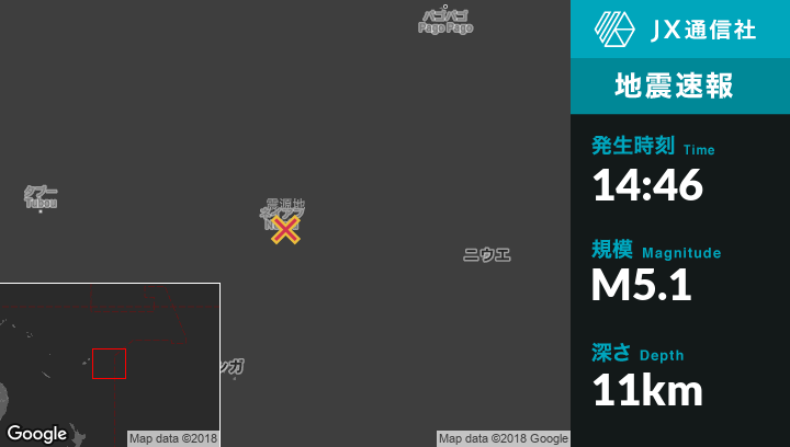 11月30日 14:46頃、トンガのNeiafuから北北東22kmの地点でM5.1の地震がありました。