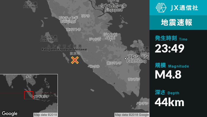 | 震源地 | インドネシアのSungaipenuhから南南西112kmの地点 |