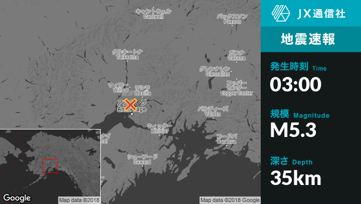 | 震源地 | アラスカのBig Lakeから南6kmの地点 |