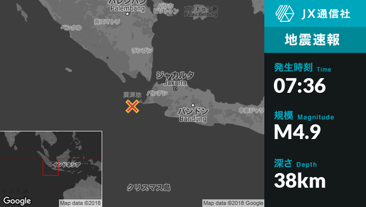 | 震源地 | インドネシアのTugu Hilirから西72kmの地点 |