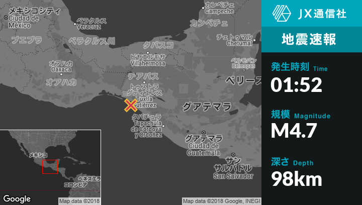 | 震源地 | メキシコのTres Picosから西北西17kmの地点 |