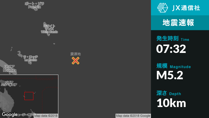 | 震源地 | ニューカレドニアのIle Hunterから北北西139kmの地点 |