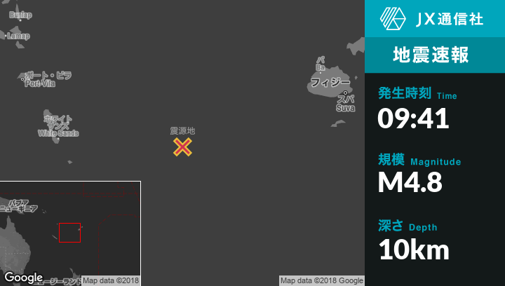 12月03日 09:41頃、フィジーのCeva-i-Raから北北西268kmの地点でM4.8の地震がありました。