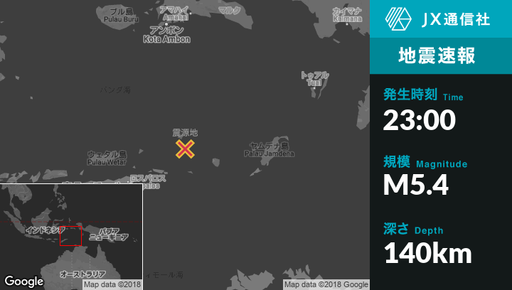 | 震源地 | インドネシアのSaumlakiから西北西288kmの地点 |