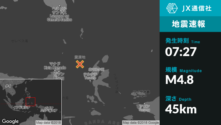 | 震源地 | インドネシアのTobeloから西北西158kmの地点 |