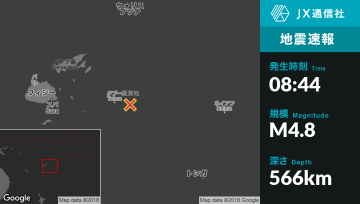 | 震源地 | フィジーのNdoi Islandから北北東275kmの地点 |