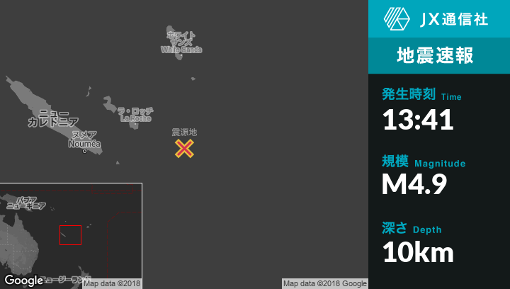 | 震源地 | ニューカレドニアのTadineから東南東180kmの地点 |