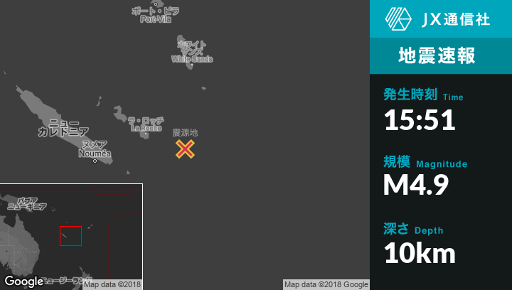 | 震源地 | ニューカレドニアのTadineから東南東143kmの地点 |