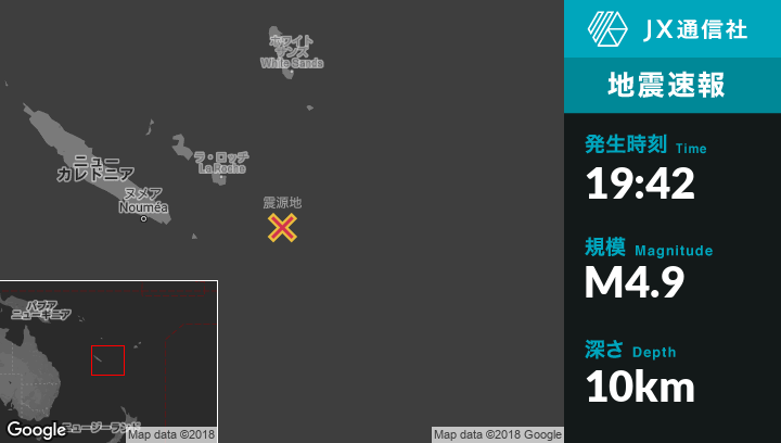 | 震源地 | ニューカレドニアのTadineから東南東167kmの地点 |