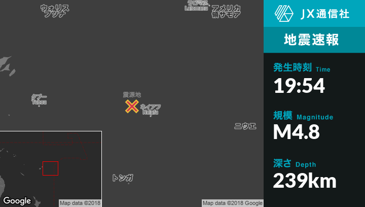 | 震源地 | トンガのNeiafuから北西103kmの地点 |
