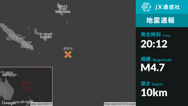 | 震源地 | ニューカレドニアのIle Hunterから西222kmの地点 |