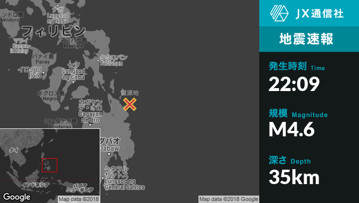 | 震源地 | フィリピンのCortesから北東27kmの地点 |