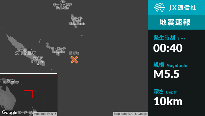| 震源地 | ニューカレドニアのTadineから東143kmの地点 |