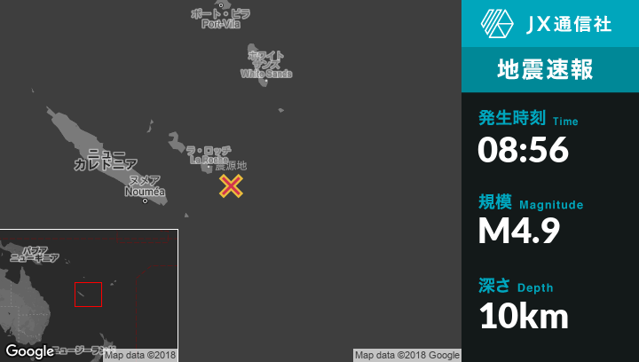 | 震源地 | ニューカレドニアのTadineから東南東77kmの地点 |
