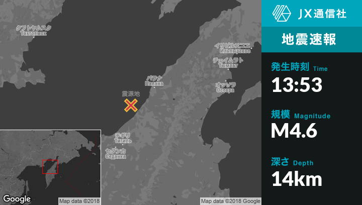 | 震源地 | ロシアのPalanaから南西72kmの地点 |