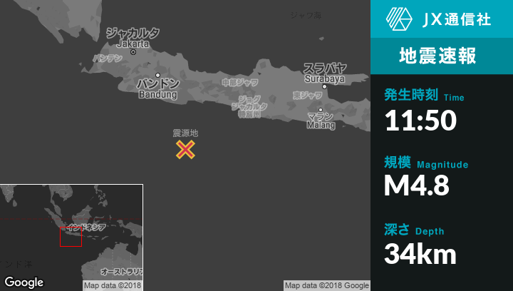 | 震源地 | インドネシアのSindangsariから南137kmの地点 |