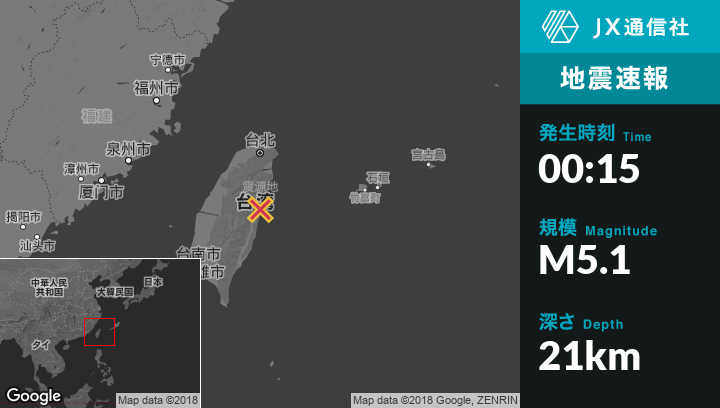 | 震源地 | 台湾のHualianから西北西4kmの地点 |