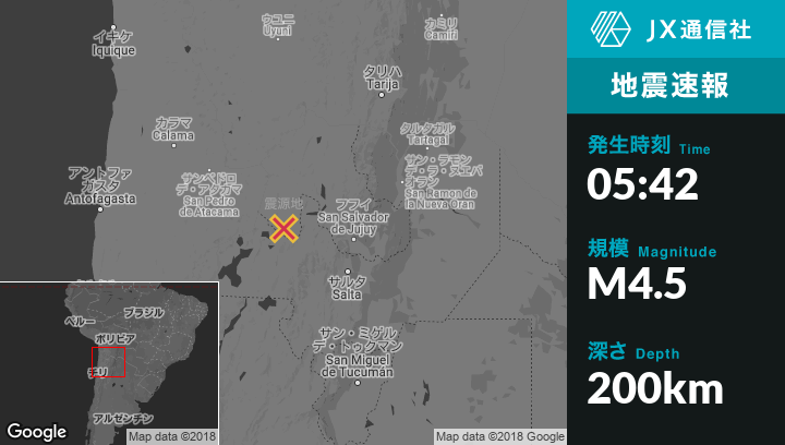 | 震源地 | アルゼンチンのSan Antonio de los Cobresから北西54kmの地点 |