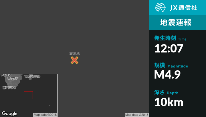 12月10日 12:07頃、フランス南部準州のIle aux Cochonsから北西772kmの地点でM4.9の地震がありました。