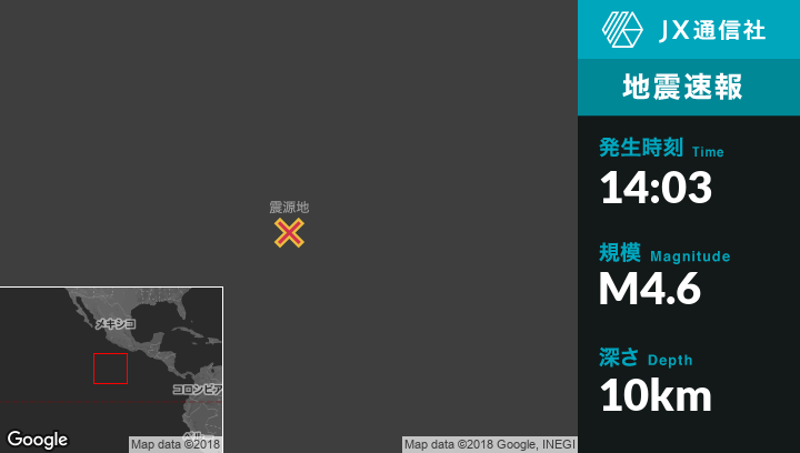 12月10日 14:03頃、フランスのClipperton Islandから東586kmの地点でM4.6の地震がありました。