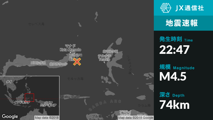 | 震源地 | インドネシアのBitungから南南東61kmの地点 |