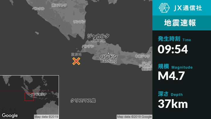 | 震源地 | インドネシアのTugu Hilirから南西79kmの地点 |