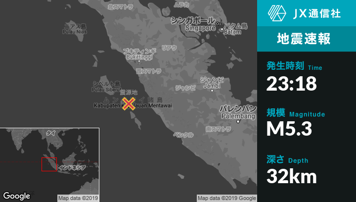 | 震源地 | インドネシアのMuara Siberutから東南東93kmの地点 |