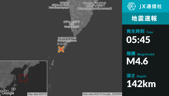 | 震源地 | ロシアのSevero-Kuril'skから南西56kmの地点 |