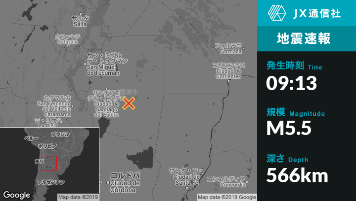 | 震源地 | アルゼンチンのSuncho Corralから南南東37kmの地点 |