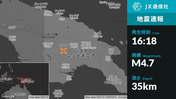 | 震源地 | パプアニューギニアのPorgeraから南南西101kmの地点 |