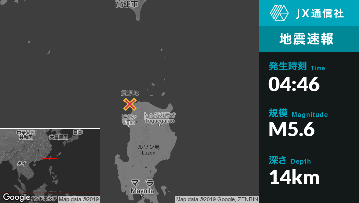 | 震源地 | フィリピンのDavilaから北西21kmの地点 |