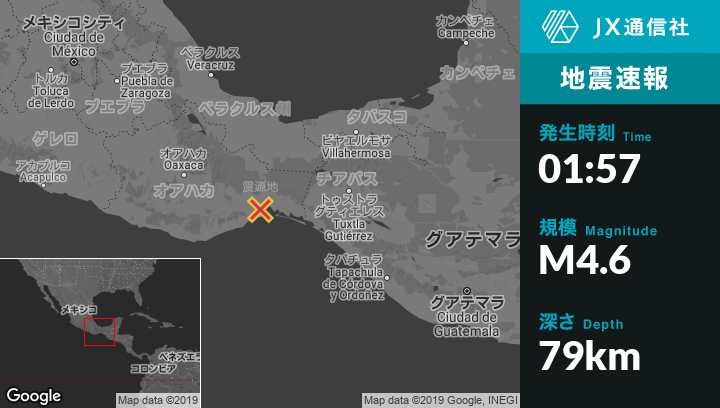 | 震源地 | メキシコのAsuncion Ixtaltepecから南3kmの地点 |