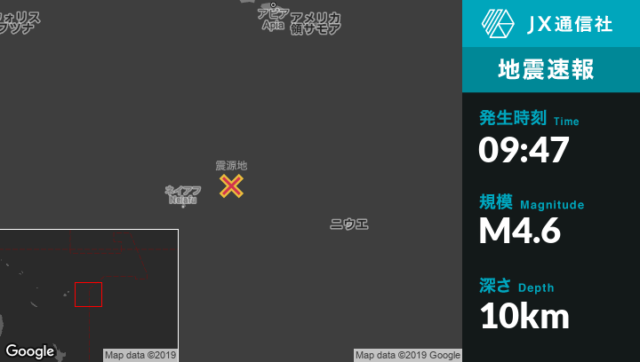| 震源地 | トンガのNeiafuから東北東142kmの地点 |