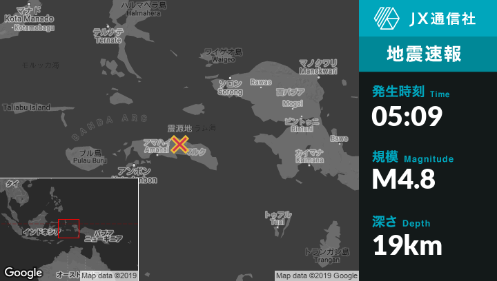 | 震源地 | インドネシアのAmahaiから東北東95kmの地点 |