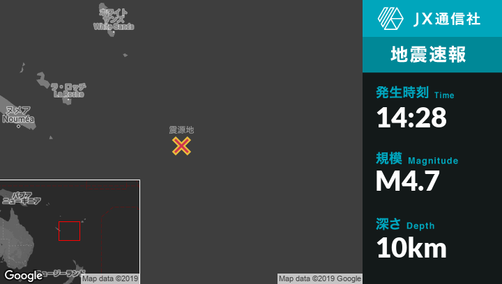 | 震源地 | ニューカレドニアのIle Hunterから南西61kmの地点 |