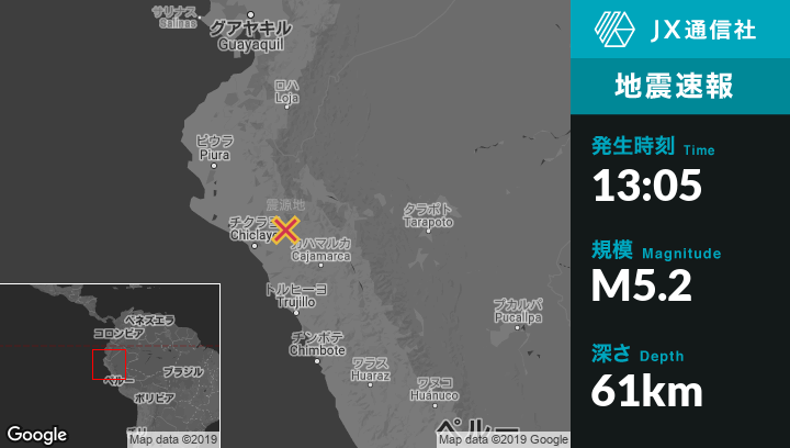 | 震源地 | ペルーのChongoyapeから北北東37kmの地点 |