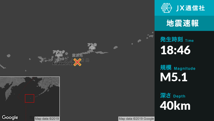 | 震源地 | アラスカのAtkaから南西91kmの地点 |