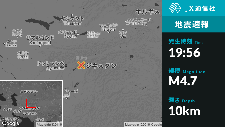 | 震源地 | タジキスタンのRoghunから南12kmの地点 |