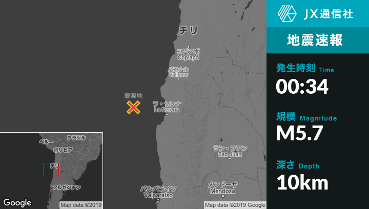 | 震源地 | チリのCoquimboから西北西138kmの地点 |
