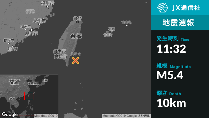 | 震源地 | 台湾のTaitung Cityから南東43kmの地点 |
