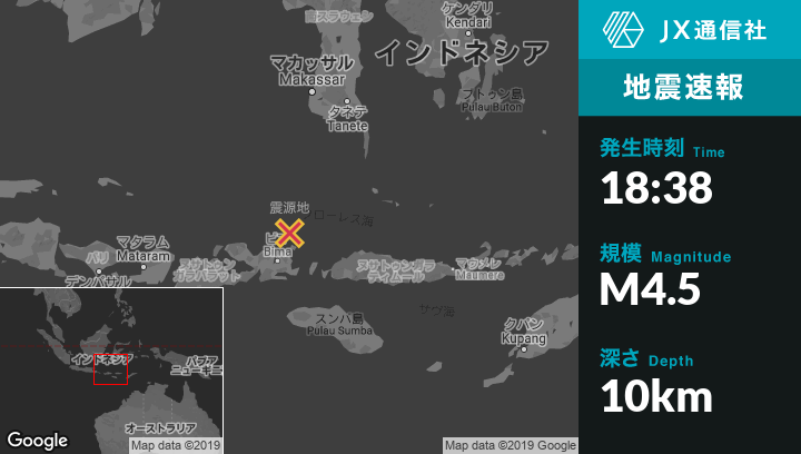 | 震源地 | インドネシアのSangiangから北54kmの地点 |
