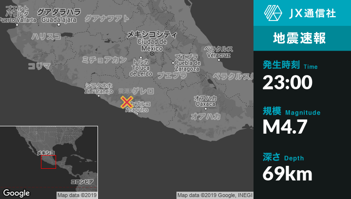| 震源地 | メキシコのAtoyac de Alvarezから北北東34kmの地点 |