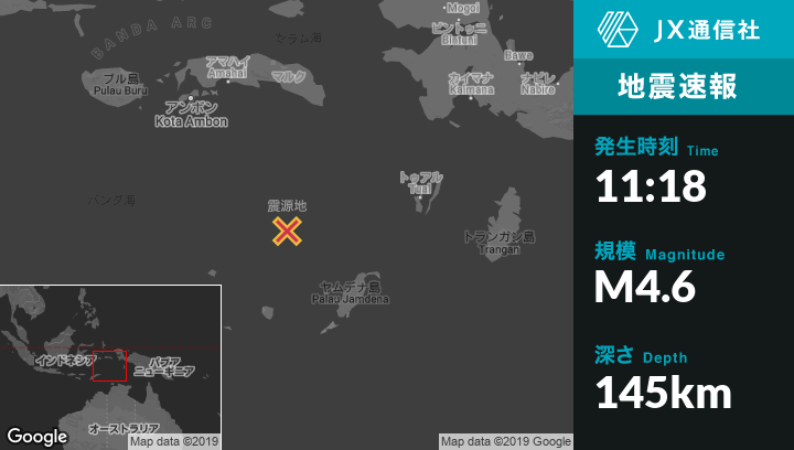 | 震源地 | インドネシアのSaumlakiから北西237kmの地点 |