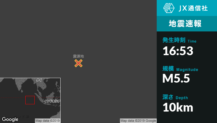 | 震源地 | インドネシアのSinabangから南西928kmの地点 |