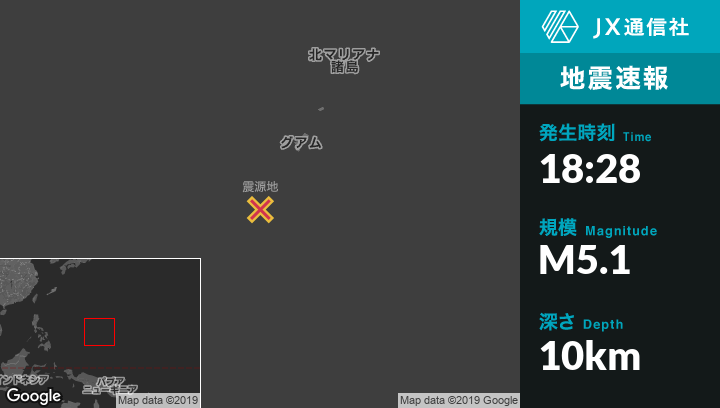| 震源地 | グアムのMerizo Villageから南西153kmの地点 |