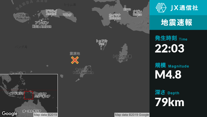 | 震源地 | インドネシアのSaumlakiから北北西166kmの地点 |
