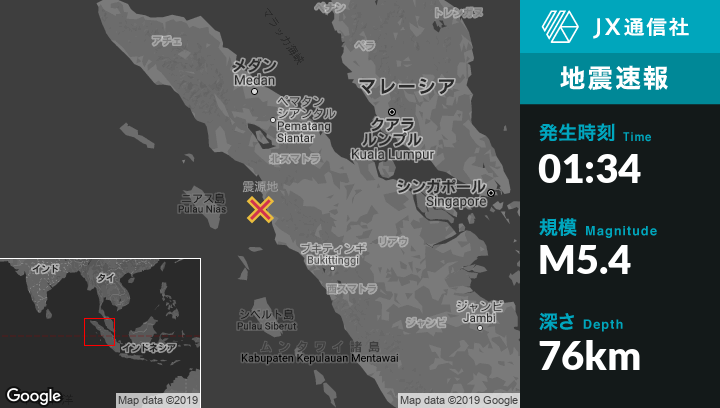 | 震源地 | インドネシアのPadangsidempuanから西南西58kmの地点 |